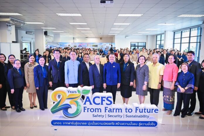 วันที่ 9 ต.ค.68 นายสัตวแพทย์ชัยวัฒน์ โยธคล เลขาธิการสำนักงานมาตรฐานสินค้าเกษตรและอาหารแห่งชาติ (มกอช.) เป็นประธานเปิดงานวันคล้ายวันสถาปนาครบรอบ 23 ปี ในวันที่ 9 ตุลาคม 2568 ภายใต้แนวคิด “23 years ACFS : From Farm to Future : Safety / Security / Sustainability-23 ปี มกอช. จากฟาร์มสู่อนาคต : มุ่งมั่นความปลอดภัย สร้างความมั่นคง สู่ความยั่งยืน” โดยมี พร้อมเปิดตัว ทีมหน่วยปฏิบัติการพิเศษปราบปรามสินค้าเกษตรที่ไม่ได้มาตรฐาน เพื่อยกระดับความเชื่อมั่นและปกป้องเกษตรกรและผู้บริโภค