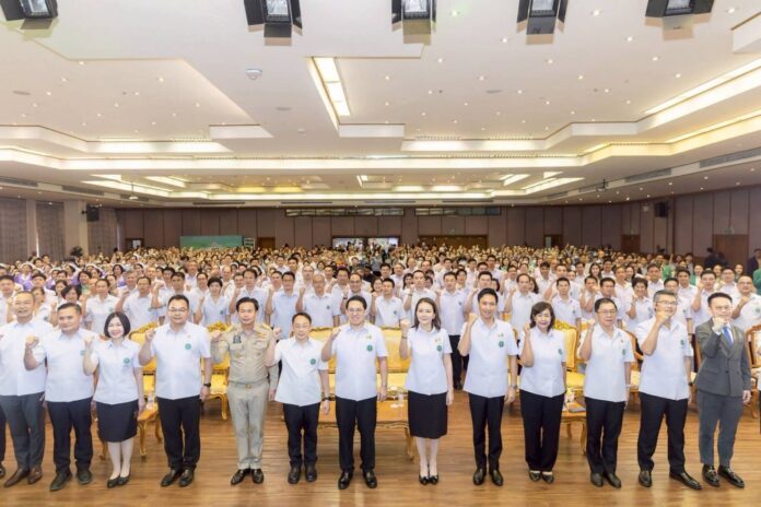 (17ต.ค.68) นางสาวจิตศ์ตราฎ์ หมีทองธนกรณ์ เลขานุการรัฐมนตรีว่าการกระทรวงสาธารณสุข ร่วมเปิดโครงการ Kick off ระบบสาธารณสุขยุคใหม่ “หมอไม่ล้า ประชาชนไม่รอ เชื่อมต่อทุกบริการผ่านเทคโนโลยี” โดยมี นายพัฒนา พร้อมพัฒน์ รัฐมนตรีว่าการกระทรวงสาธารณสุข เป็นประธาน พร้อมด้วยผู้บริหารและเจ้าหน้าที่บุคลากรสาธารณสุข ร่วม Kick off ระบบสาธารณสุขยุคใหม่ เพื่อยกระดับการให้บริการ และการเข้าถึงการดูแล รักษาสุขภาพ ของประชาชนในเขตจังหวัดนนทบุรีและพื้นที่ใกล้เคียง ณ โรงพยาบาลพระนั่งเกล้า จังหวัดนนทบุรี