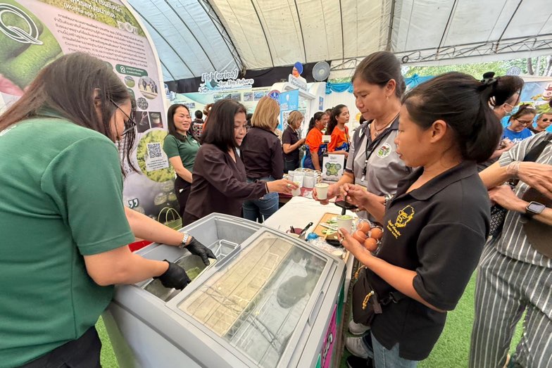 ภายในบูธของ มกอช. ได้รับความสนใจจากผู้เข้าร่วมงานจำนวนมาก ด้วยการจัดกิจกรรมให้ร่วมสนุกผ่านเกมชิงของรางวัลมากมาย และกิจกรรมพิเศษที่โดดเด่นในวันนี้ คือการให้ประชาชนได้ร่วมชิม “ไอศกรีมจากผำ หรือ ไข่ผำ” ซึ่งเป็นผลิตภัณฑ์นวัตกรรมทางเลือกที่สะท้อนให้เห็นถึงศักยภาพของสินค้าเกษตรไทยในการพัฒนาไปสู่การเป็นอาหารแห่งอนาคต