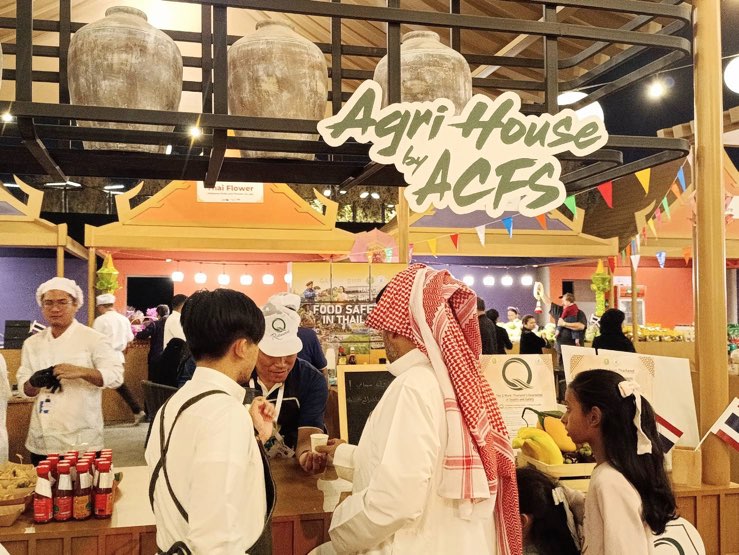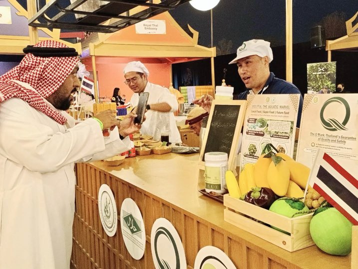 นายสัตวแพทย์ชัยวัฒน์ โยธคล เลขาธิการสำนักงานมาตรฐานสินค้าเกษตรและอาหารแห่งชาติมอบหมายให้กองส่งเสริมมาตรฐาน มกอช. เข้าร่วมจัดงาน Thai Food Village หรือ Thai Food Festival ภายใต้งาน Saudi Feast Food Festival 2025 เพื่อจัดแสดงนิทรรศการและออกบูทประชาสัมพันธ์ความปลอดภัยอาหารของประเทศไทย ตั้งแต่ต้นน้ำ กลางน้ำ และปลายน้ำ และ เครื่องหมายความปลอดภัยอาหาร ได้แก่ เครื่องหมาย Q, Organic Thailand ,Halal รวมถึงกิจกรรมแจกชิมอาหารไทย เพื่อสร้างความเชื่อมั่นให้ผู้ประกอบการและผู้บริโภคของซาอุดีอาระเบีย ให้เชื่อมั่นในความปลอดภัยอาหารของไทยและสนับสนุนผู้ประกอบการของไทยในการขยายตลาดสินค้าเกษตรและอาหารในประเทศซาอุดีอาระเบีย ระหว่างวันที่ 27 พฤศจิกายน – 6 ธันวาคม 2568 ณ มหาวิทยาลัย King Saud กรุงริยาด ราชอาณาจักรซาอุดีอาระเบีย ทั้งนี้ ได้รับเกียรติจาก นางศุภจี สุธรรมพันธุ์ รัฐมนตรีว่าการกระทรวงพาณิชย์ นายดามพ์ บุญธรรม เอกอัครราชทูต นายวุฒิไกร ลีวีระพันธุ์ ปลัดกระทรวงพาณิชย์ นางสาวโชติมา เอี่ยมสวัสดิกุล อธิบดีกรมเจรจาการค้าระหว่างประเทศ ผู้บริหาร เจ้าหน้าที่จากกระทรวงพาณิชย์และสถานทูตไทยเข้าเยี่ยมชมบูทไทย