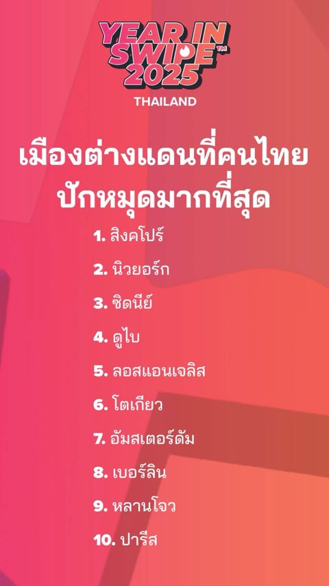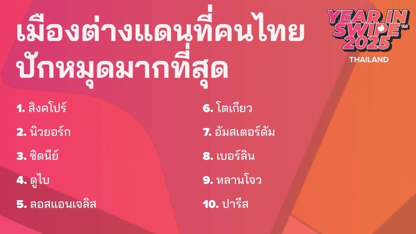 สิ่งที่เกิดขึ้นบน Tinder ทั่วโลกปี 2568¹⁴