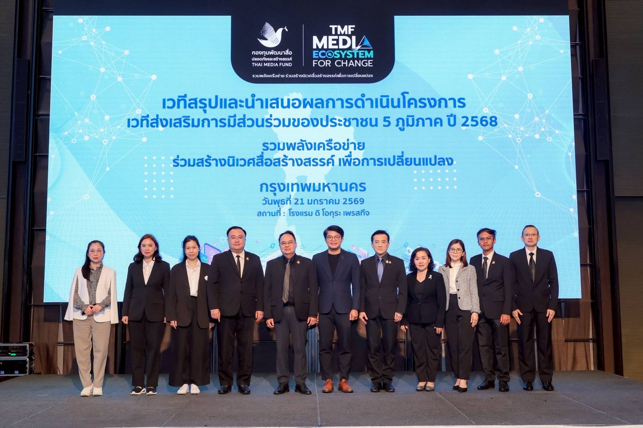 กองทุนพัฒนาสื่อปลอดภัยและสร้างสรรค์ (Thai Media Fund) เปิดเวทีใหญ่สังเคราะห์บทเรียนสำคัญระดับประเทศ ในงานสรุปผลการดำเนินโครงการเวทีส่งเสริมการมีส่วนร่วมของประชาชน ปี 2568 ภายใต้แนวคิด “Media Ecosystem for Change” ณ โรงแรม ดิ โอกุระ เพรสทีจ กรุงเทพฯ โดยนำผลสัมฤทธิ์จากการลงพื้นที่ระดมความเห็น 5 ภูมิภาค สรุปสถานการณ์สื่อไทย พร้อมประกาศปรับทิศทางการให้ทุนสู่รูปแบบ “ทุนเชิงพื้นที่” ลดขั้นตอนเอกสารเพื่อเปิดทางให้ชุมชนเข้าถึงง่ายขึ้น พร้อมเปิดเวทีเสวนา ดึงผู้บริหารสื่อรัฐ-เอกชน ร่วมระดมสมองฝ่าวิกฤตความเปลี่ยนแปลงของภูมิทัศน์สื่อ