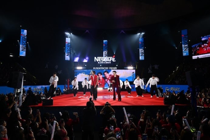 เนสกาแฟ แบรนด์กาแฟอันดับ 1 ของไทย สร้างปรากฏการณ์ครั้งสำคัญจัดงานสุดยิ่งใหญ่แห่งปี “เนสกาแฟ เบลนด์ แอนด์ บรู เมค ดิส โมเมนต์ มอร์” (NESCAFÉ BLEND & BREW Make This Moment MORE) ครั้งแรกกับการเนรมิตเวทีมวยราชดำเนินให้เป็นเวทีเปิดตัว “เนสกาแฟ เบลนด์ แอนด์ บรู ริช อโรมา สูตรใหม่” อย่างเป็นทางการ ภายใต้คอนเซ็ปต์ “เพิ่มกาแฟ เติมนม อร่อยไปอีก” ซึ่งเป็นสูตรที่ดีที่สุดของเนสกาแฟ ผ่านประสบการณ์ความสนุกสุดอลังการกับการดื่มด่ำกาแฟแบบ Immersive Experience 360 องศา พร้อมเปิดตัว ดูโอ แบรนด์แอมบาสเดอร์คู่ใหม่ “ณเดชน์ คูกิมิยะ” และ “แบมแบม” ที่จับมือร่วมงานกันเป็นครั้งแรกผ่านการปล่อยซิงเกิลพิเศษ “ไปอีก Ready For MORE” ที่แต่งและโปรดิวซ์โดยแบมแบม และเคยขึ้นเทรนด์อันดับ 1 ใน X ตั้งแต่วันปล่อยทีเซอร์ โดยมีคอกาแฟและแฟนคลับเข้าร่วมงานอย่างคับคั่งกว่า 1,200 คน ที่เวทีมวยราชดำเนิน กรุงเทพฯ