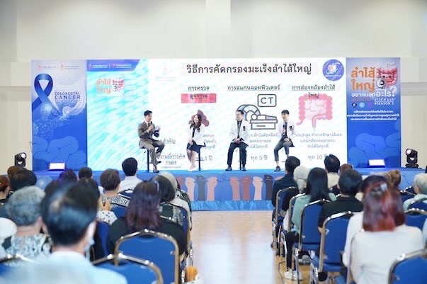 เจาะลึกภัยเงียบและการคัดกรอง โดยทีมแพทย์อายุรศาสตร์ระบบทางเดินอาหารและตับ โรงพยาบาลจุฬาภรณ์ โดย พญ.อัญญา เกียรติวีระศักดิ์ ชี้มะเร็งลำไส้ใหญ่เป็น “ภัยเงียบ” ระยะแรกไม่แสดงอาการ การคัดกรองจะช่วยตรวจพบโรคตั้งแต่ระยะเริ่มต้น เพิ่มโอกาสรักษาหายโรคมักเริ่มจาก “ติ่งเนื้อ” ที่สามารถตรวจพบและตัดออกได้ก่อนพัฒนาเป็นมะเร็ง  ย้ำการคัดกรองไม่เพียงช่วยรักษา แต่ยัง “ป้องกัน” การเกิดมะเร็งได้ ด้าน นพ.วรุตม์ ต.ศรีวงษ์แนะนำกลุ่มทั่วไปเริ่มคัดกรองที่อายุ 45–50 ปี ส่วนผู้มีประวัติครอบครัวควรตรวจเร็วขึ้นตั้งแต่อายุ 40 ปี หรือก่อนวัยที่ญาติสายตรงเป็นโรค 10 ปี และ หากมีอาการผิดปกติ เช่น ถ่ายเป็นเลือด น้ำหนักลด ควรพบแพทย์ทันที และ นพ.สพล เทพวิวัฒน์จิต ระบุวิธีคัดกรองหลัก 3 วิธี ได้แก่ ตรวจอุจจาระ เอกซเรย์คอมพิวเตอร์ และส่องกล้องลำไส้ใหญ่ การส่องกล้องมีความแม่นยำสูงสุด และสามารถตัดติ่งเนื้อได้ทันที แนะนำความถี่การตรวจ: อุจจาระทุกปี, CT ทุก 5 ปี, ส่องกล้องทุก 10 ปี ย้ำมะเร็งลำไส้ใหญ่ “ป้องกันได้เกือบ 100%” หากตรวจพบตั้งแต่ระยะเริ่มต้น
